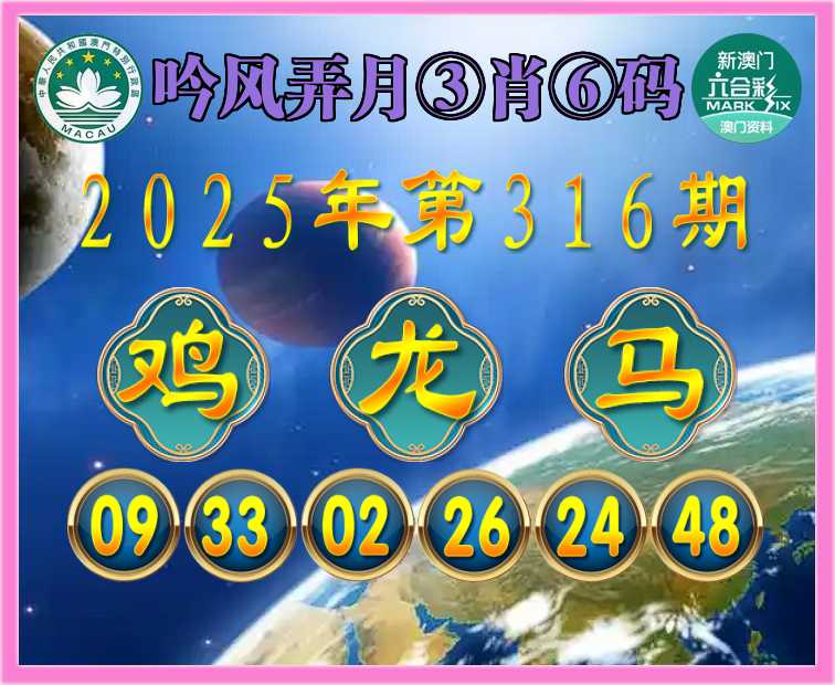 316期:《吟风弄月》 ♠️③肖⑥码♠️【鸡龙马】开:马24准
