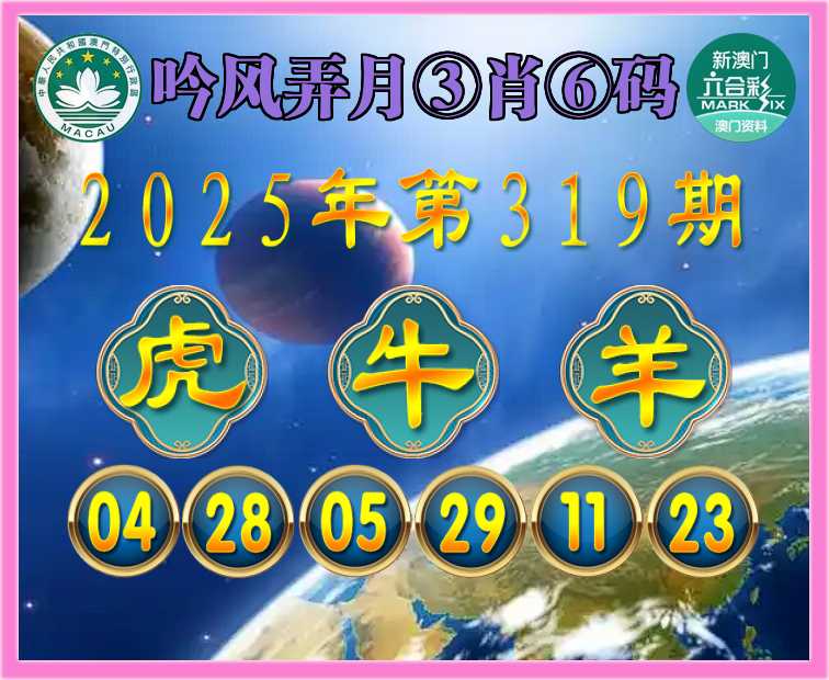 319期:《吟风弄月》 ♠️③肖⑥码♠️【虎牛羊】开:鸡45错